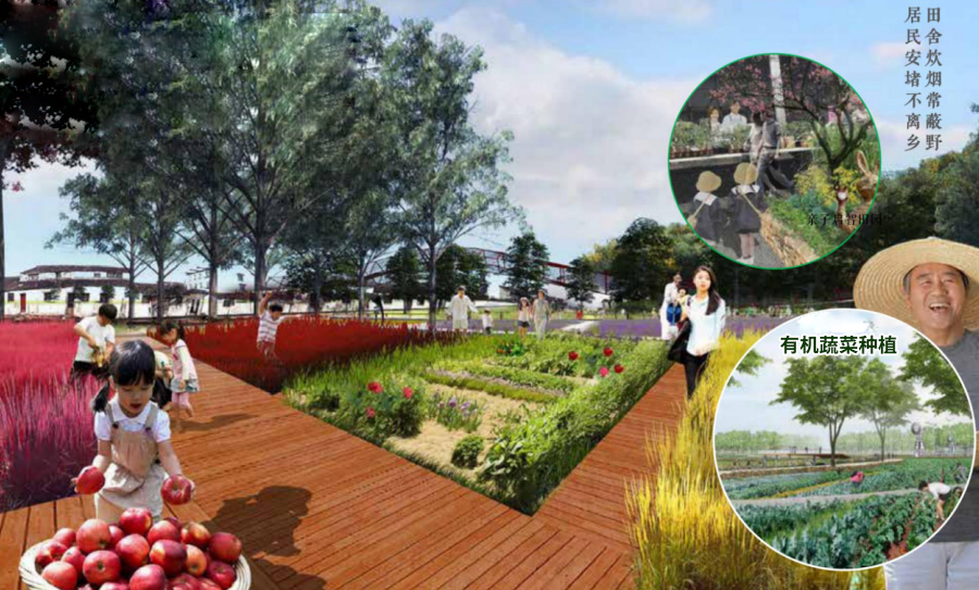 結合片區(qū)和村蘋果、蔣町梨等果林農業(yè)資源,以季節(jié)性彩照、田園知識科普等功能為核心,回歸自然田園。