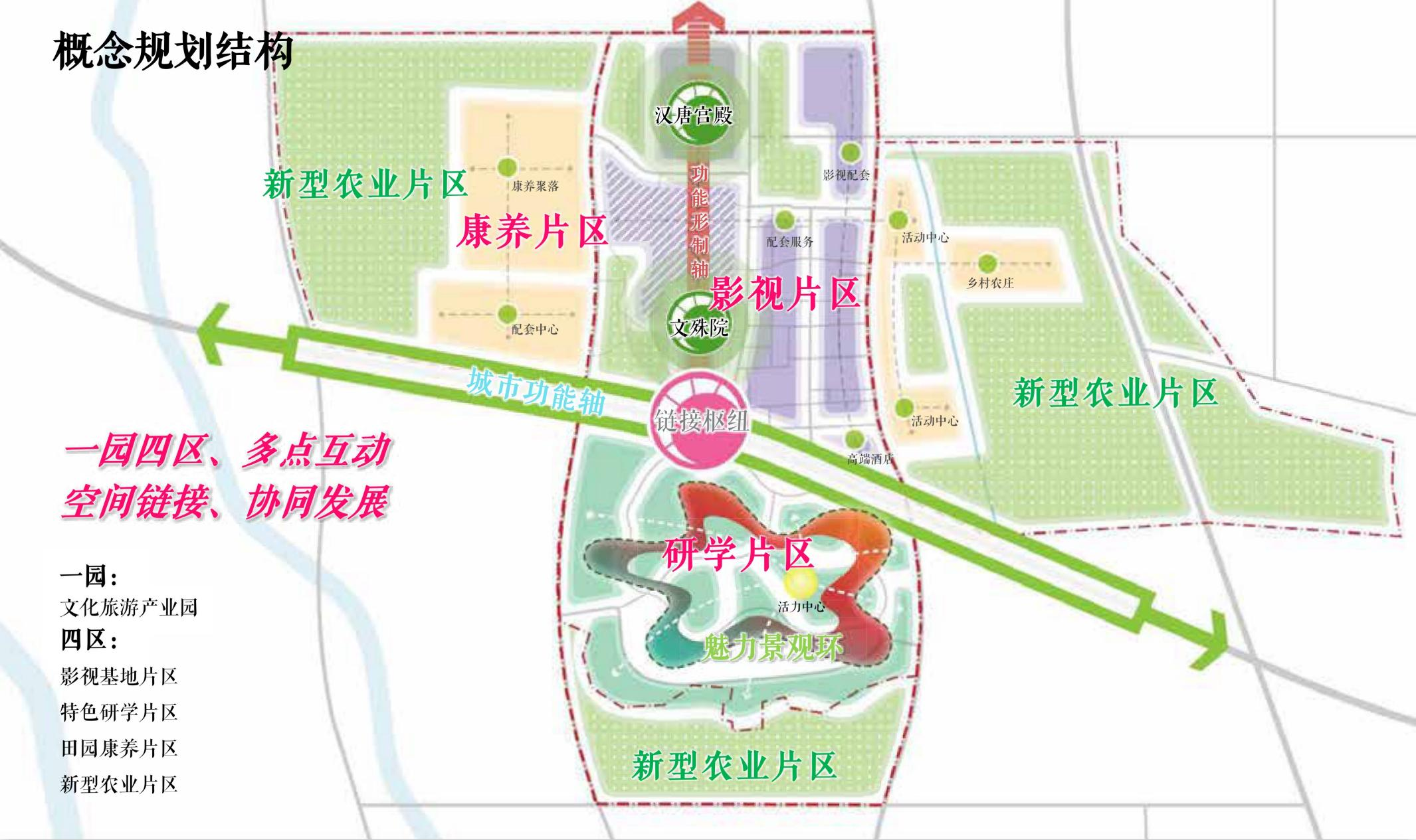 四區(qū):影視基地片區(qū)、特色研學(xué)片區(qū)、田園康養(yǎng)片區(qū)、新型農(nóng)業(yè)片區(qū)